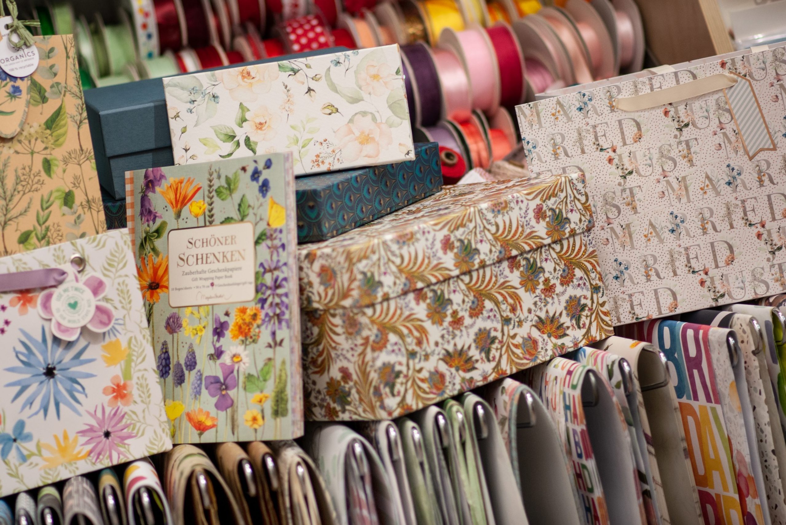 Edel, schlicht oder verspielt – Geschenkpapiere, Geschenktaschen und Boxen, so wird jedes Präsent zum Hingucker. Viele Verpackungen sind wieder verwendbar und besonders einfach in der Handhabung – befüllen, mit Seidenpapier auskleiden und fertig.